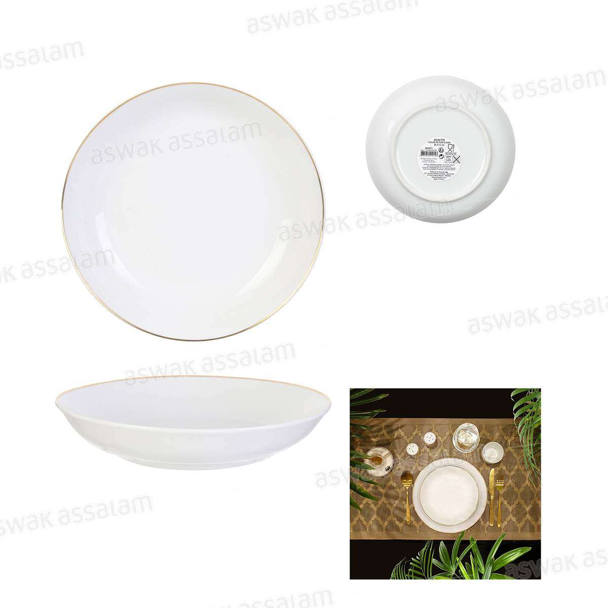 ASSIETTE CREUSE 21CM PORCELAINE FILET OR