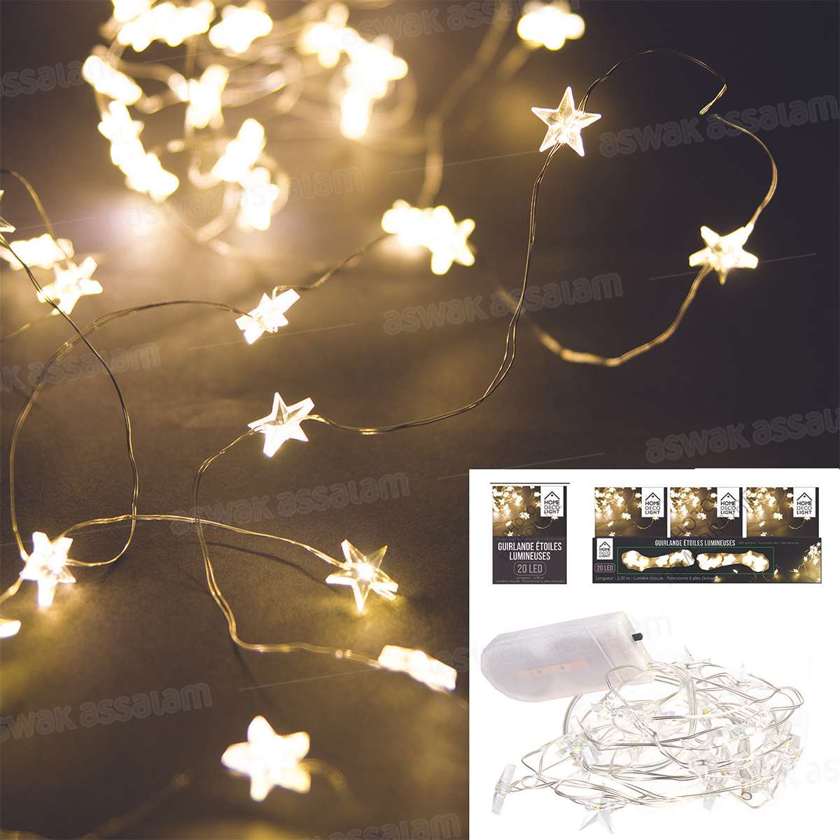 GUIRLANDE LUMINEUSE ETOILE, 20 LED LUMIERE CHAUDE 230CM